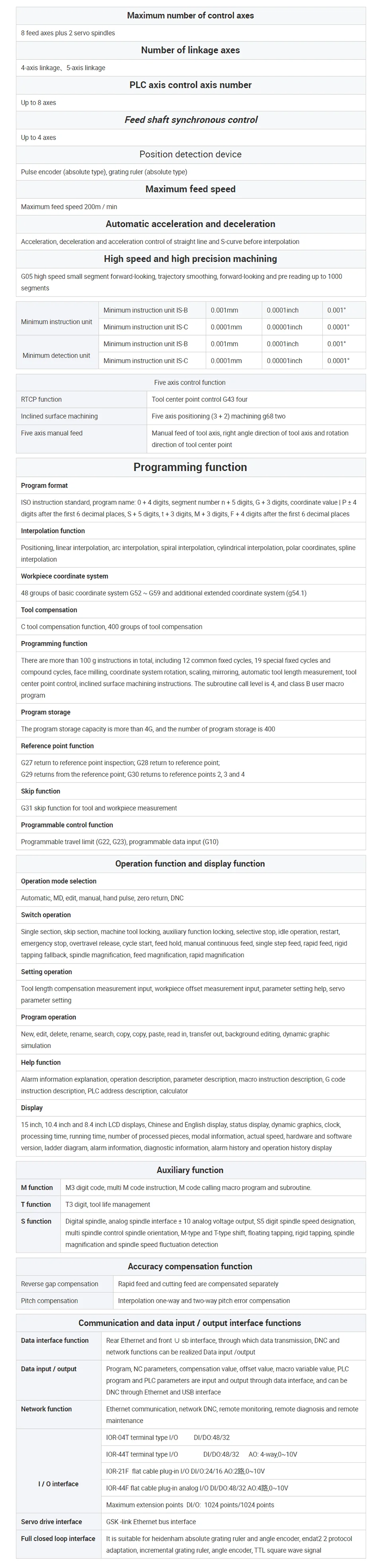 5-axis linkage machining, 5-axis positioning machining, high-speed and high-precision machining, intelligent factory network, normal direction control function, rigid tapping back, high-speed rigid tapping, chuck tailstock barrier