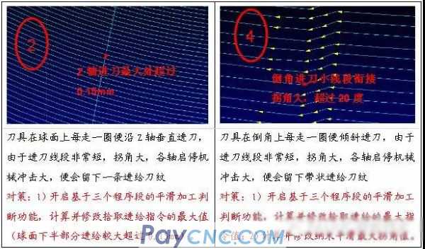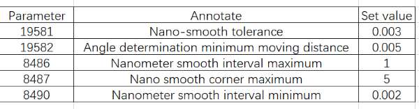 Based on the analysis of the above NC processing of mold processing, the calculations have obtained: the maximum tolerance value of nano-smoothing exceeds 0.01mm, the maximum command value of picking feed exceeds 0.15mm, the maximum value of nano-smooth spacing points exceeds 4mm, and the maximum value of nano-smooth corners exceeds 20 degrees ; According to the calculation results, adjust the nano-smoothing related parameters (the following table) for trial processing, and the mold processing effect (below) is very satisfactory. Among them: the dense small stripes on the spherical surface disappeared, and the cutting marks at the chamfer disappeared.