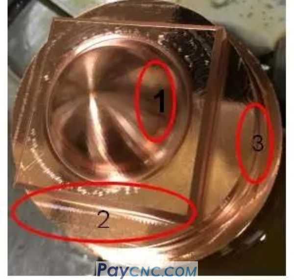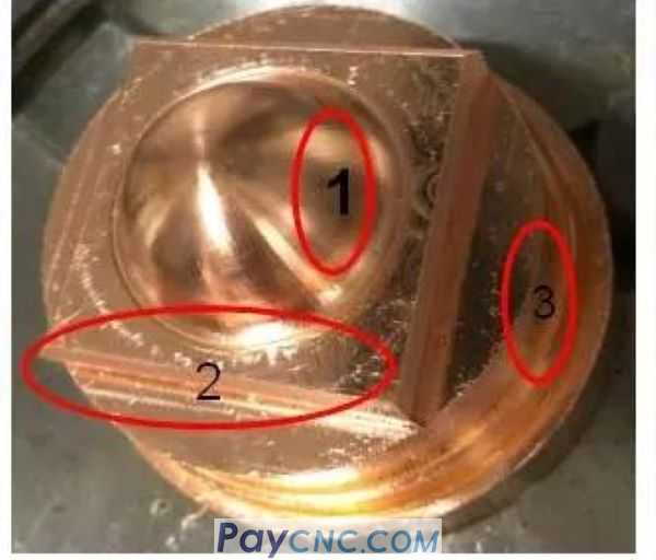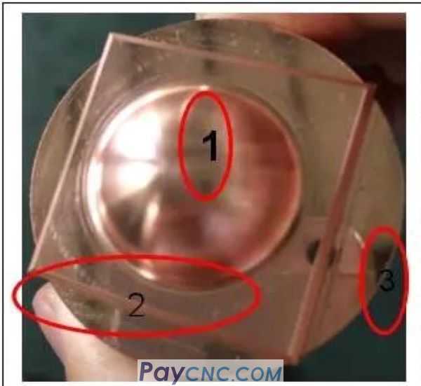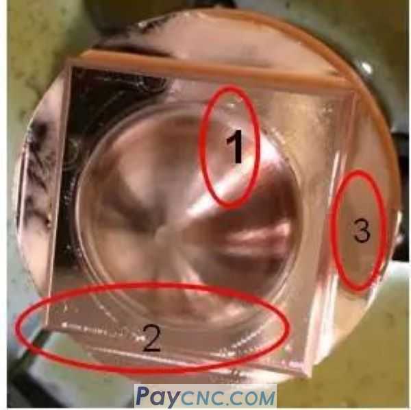 According to the above, modify the parameters related to nanosmoothing (table below). The obtained processing effect is as shown in the figure below. It can be seen that the fine stripes on the top of the spherical surface disappear, but the fine stripes in the middle and lower parts of the spherical surface have been improved but cannot be completely eliminated, and the tool marks at the feed position of the chamfer have not been completely eliminated.
