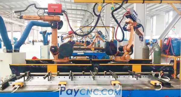 Due to the long workpiece, the project uses two robots to weld at the same time, with H-type two-station layout;