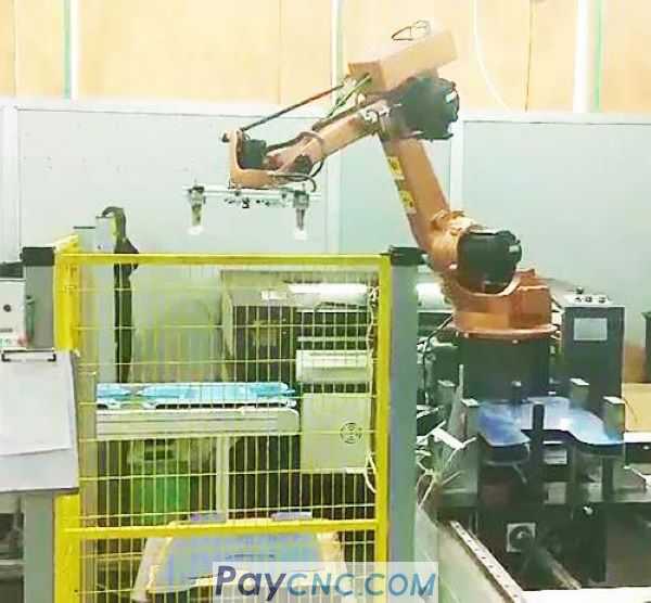 1 set of RMD20 handling robot, 1 set of flexible flexible grips, 1 set of loading and splitting mechanism, 1 set of cutting and conveying line, 1 set of hydraulic punching machine, laser cutting machine to complete automatic panel loading, punching Laser cutting and centralized collection of product off-line;