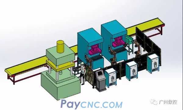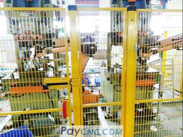 One transfer machine and three RMD08 robots complete the entire stamping process.