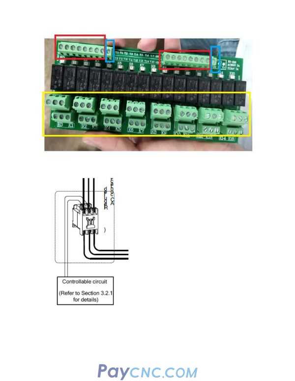 Yellow: Connect to external vital parts, such as solenoid valves, and the contact points are controlled by black relays