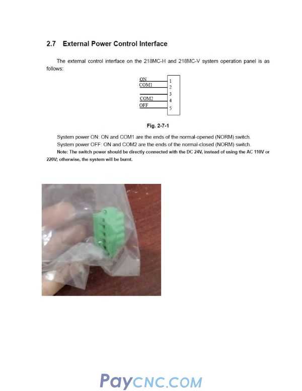 I think I should plug them with the EXTERNAL POWER CONTROL INTERFACE. But i don’t know how to do it. What should I connect to ON -COM1 and what should I connect to COM2-OFF? (It must be with the Y0, Y1 ... of the relay board but how?) Could you please send me a little diagram just for reference.