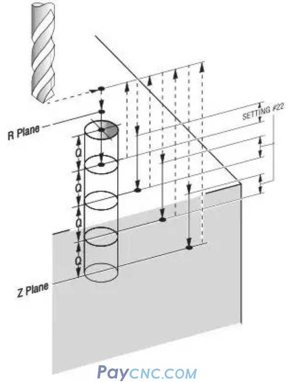 If the tool is raised to the reference height-R every time a small distance is drilled -Q, it may be more suitable for machining close to the bottom of the hole, but it will take a lot of time to machine the first half of the hole, which causes Unnecessary waste.