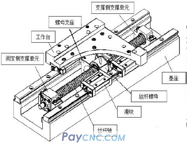 ④Usually, the linear guide rail and the workbench are assembled first, and the movement direction of the workbench is fixed, and then the direction of the ball screw is adjusted based on this and it is strictly parallel to the movement direction of the workbench. Therefore, before the support unit is finally fixed to the base, the ball nut support and the ball nut are finally fixed, and the ball nut support is finally fixed to the workbench, these four parts should be carefully adjusted to ensure that the support unit , The direction of motion determined by the lead screw and ball nut and the direction of motion of the worktable are adjusted to be strictly parallel in height and left and right directions.