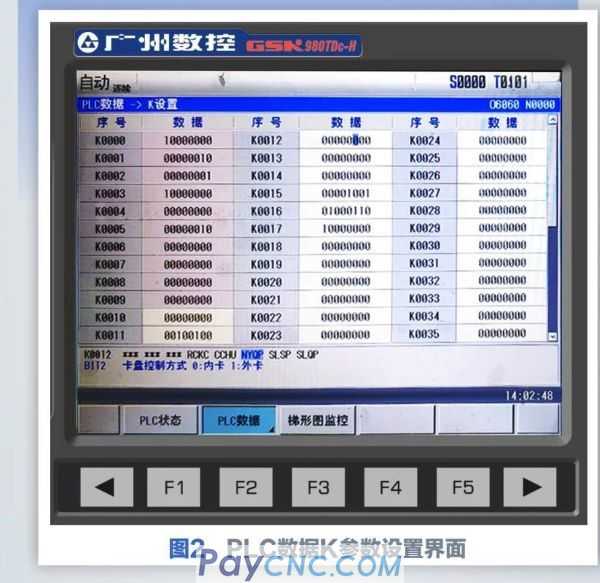 Press the "Ladder Diagram" button on the panel, then press the "PLC Data" softkey below the system screen to enter the system K parameter setting interface, move the cursor to K12.2, as shown in Figure 2, and then enter K12 in the entry mode 2 Switch between 0 and 1.The operation of the above steps can quickly solve the problem of switching the working mode of the internal and external cards of the chuck. Other CNC systems of Guangzhou CNC can also refer to this method for operation settings.