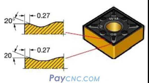 The two types of blades in the above figure have rake angles of 20 degrees and 24 degrees, and the edge widths are 0.27 and 0.12, respectively.