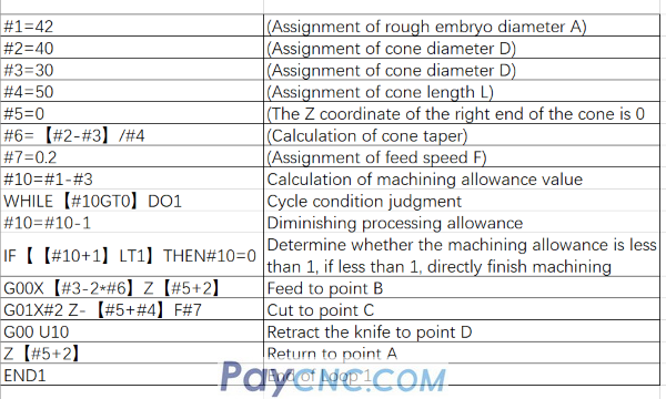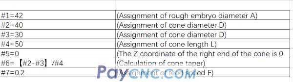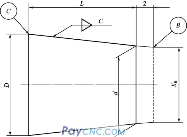 Solve the X coordinate value of point B: XB=d-2C=d-2, so the X value of point B is expressed as "#3-2*#6" in the macro program, where #6 is the value of the taper of the cone.