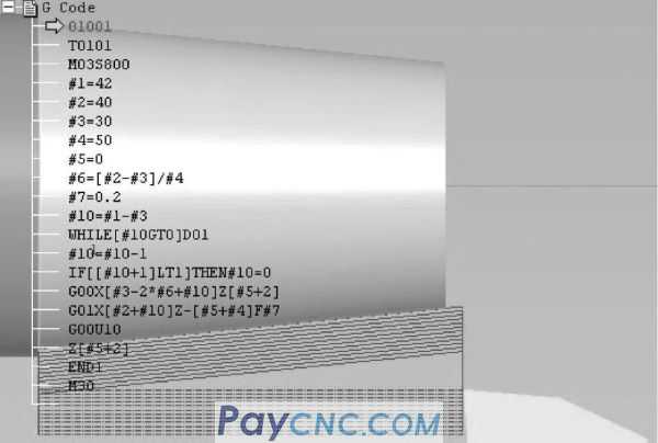 Next, you can translate the trapezoidal route of A→B→C→D→A as shown in Figure 2-3, and perform the rough finishing of the conical surface by layer cutting. Analyzing the geometric parameter model can obtain the total machining allowance as the blank diameter A -Conical diameter d. Using the machining allowance as a variable, the WHILE loop statement is used to compile the machining program as follows. The bold part of the program can be regarded as the program operation part of the three basic parts of the macro program: