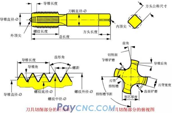 2) Cutting cone: The cutting part of the tap has formed a partial fixed pattern. Generally, the longer the cutting cone, the better the life of the tap.