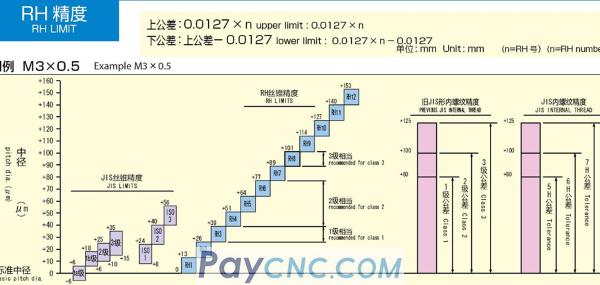 2) The extrusion tap OSG uses the RH precision system. The RH precision system forces the entire tolerance zone width to start from the lowest limit, and each 0.0127mm is regarded as a precision level, named RH1, RH2, RH3, etc.