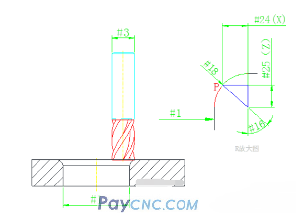 Today, take the machining center round arc R as an example (using a standard milling cutter), as shown in the figure below: