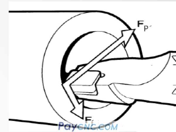 A ferramenta produzirá uma força componente (Fp) na direção radial ao processar a peça, como mostrado abaixo: