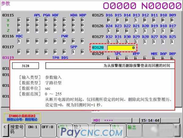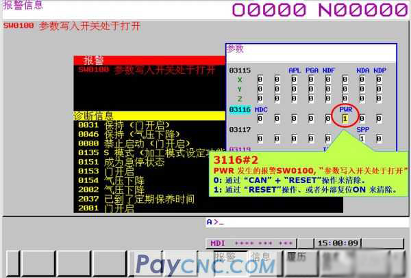 3116#2 PWR alarm SW0100, "parameter writing switch is on"