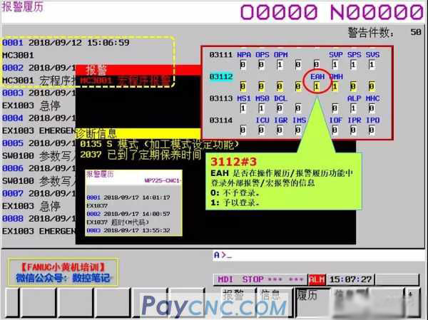 3112#3 Does EAH register external alarm/macro alarm information in the operation history/alarm history function?