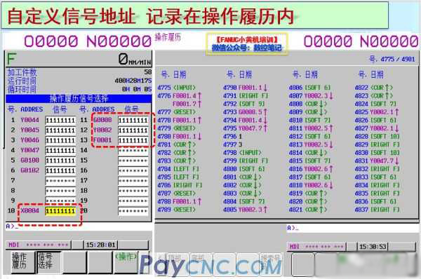 5> It is also possible to customize some signal addresses and record the changes of these signals in the operation history;