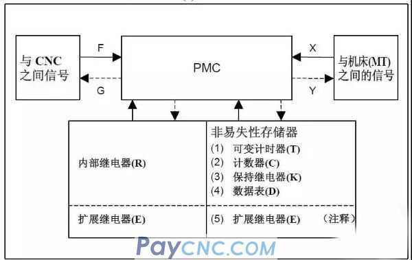 • X: Input signal from the machine tool side. Such as proximity switches, limit switches, pressure switches, operation buttons and other input signal components. PMC receives input signals from various devices on the machine tool side, and performs logical operations in the ladder diagram as the conditions for machine tool operation and the basis for diagnosis of peripheral equipment.