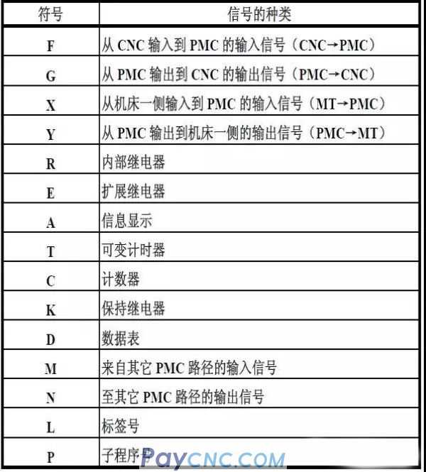 • G: The signal output from the PMC side to the system part. Control and feedback the system part (such as axis interlock signal, M code execution complete signal, etc.).