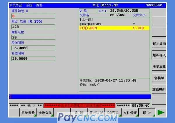 One-click loading of the corresponding axis and selecting the REN file can quickly complete the pitch compensation parameter setting and pitch compensation data writing;