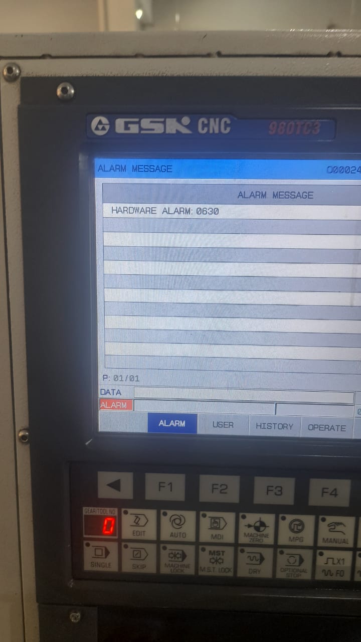 HARDWARE ALARM 0630 Showing on GSK980TC3 CNC Controller