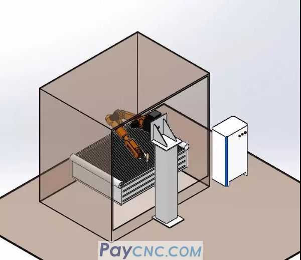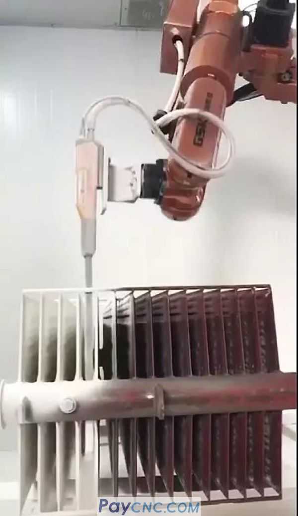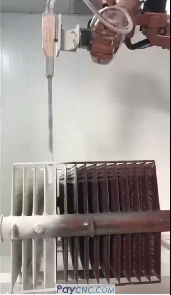 1 RB15L handling robot, side-mounted, equipped with automatic spray gun to complete the powder spraying operation.