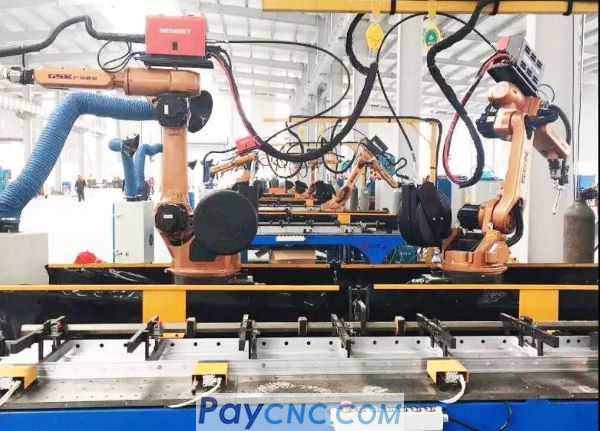 Due to the long workpiece, the project uses two robots to weld at the same time, with H-type two-station layout;