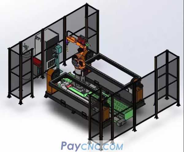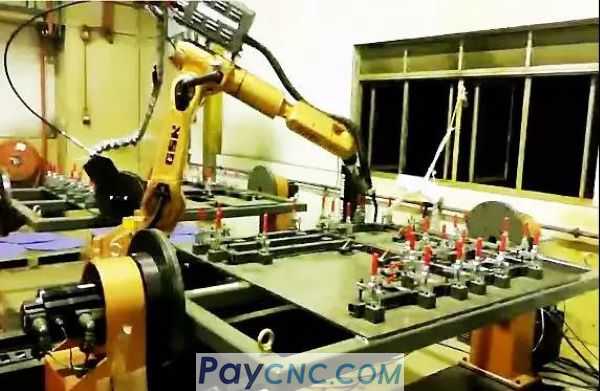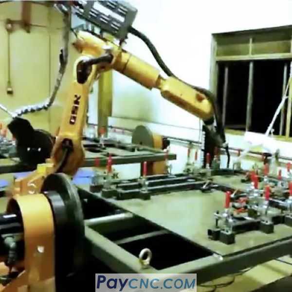 The robot replaces the welder's welding, and the workpiece is manually loaded and unloaded, and the welding is completed in one clamping;