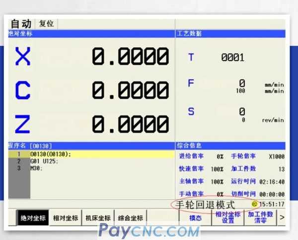 Using the forward movement and reverse movement of the handwheel to control the forward and reverse operation of the program, you can simply detect errors in the program.