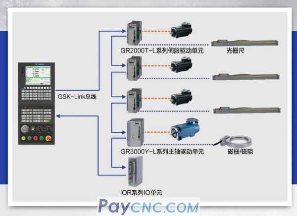 Using GSKLink industrial Ethernet bus, the maximum operating speed is 100m / min. Standard GR-L series servo device and high-resolution absolute encoder are used to realize full closed loop control of feed axis and high precision Cs axis control.