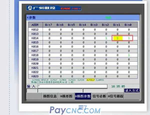 Om die indekstabel te gebruik, moet die parameter K14.0 verander word na 1 om effektief te wees, soos getoon in Figuur 1;