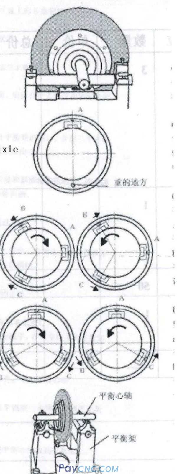 Clean the movable flange. Use oilstone to clean the contact surface of the flange and the new grinding wheel, remove the scratches and rust, and install the movable flange to the fixed torque of the fixed flange screw. Tighten the screws on the diagonal. Clean the taper hole of the flange and put on the balance mandrel. Look at the leveling adjustment of the three screws of the balance frame, level the balance and place the balance spindle on the balance frame. When the grinding wheel has an imbalance, the heavy ground is below when it stops. At this time, use chalk to make a mark on the upper side of the flange. Install a balance weight on the chalk mark. Rotate the screw counterwise to gently tighten the balance weight in the groove of the flange. Rotate the grinding wheel, and install a balance block on the left and right distances from the chalk mark. Turn the screw counterclockwise to gently tighten the balance weight in the groove of the flange. Rotate the grinding wheel so that the marked chalk mark is in a horizontal position and release your hand. When turning clockwise, follow the method shown on the left: move the balance weight by the same angle in the relative direction. When turning counterclockwise, follow the method shown on the left: move the balance weight in the opposite direction by the same angle. Adjust until the hand leaves, the grinding wheel is still. Rotate the grinding wheel so that the marked chalk mark is in a vertical position, and release your hand. When turning clockwise as shown in the figure, follow the method shown on the left: move the balance weight clockwise in the same direction by the same angle. When turning counterclockwise, follow the method shown on the left: move the balance weight counterclockwise in the same direction by the same angle. Adjust until the hand leaves, the grinding wheel is still. Repeat the operation of the item to balance the grinding wheel. After balancing, tighten the screws of the balance weight. Remove the grinding wheel from the balance frame and remove the balance mandrel from the flange. The balance correction of the grinding wheel is completed