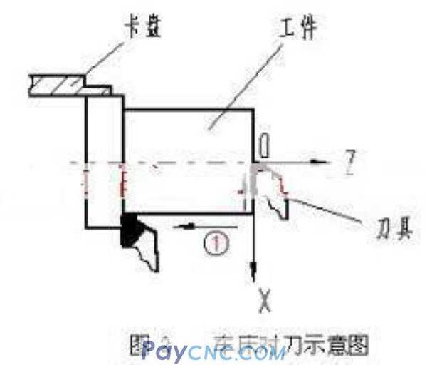 3) Establish the workpiece coordinate system. The current position of the tool nose (tool position point of the turning tool) is at the programmed zero point (ie the workpiece origin).