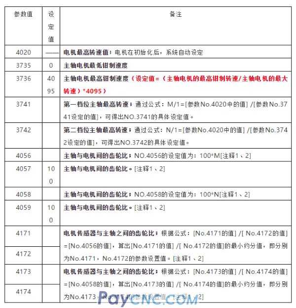 Note 2: Parameters No.4056~4059 and No.4171~4174 in the above table are setting examples when two gears are used, and the reduction ratio coefficients M and N are used when integers. For the use of 3 or 4 gears, please refer to the following parameter descriptions for setting.