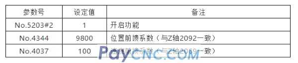 8) Default setting of feedforward parameters for spindle rigid tapping