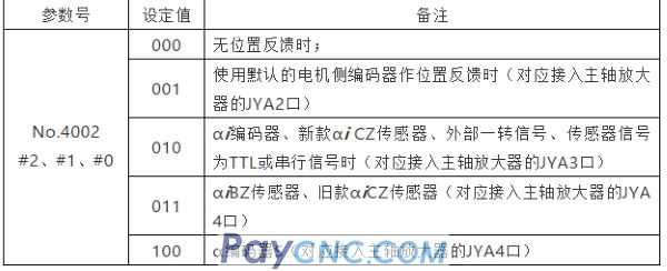 No.4002#2, #1, #0: Please set the type of spindle side detector as shown in the table below