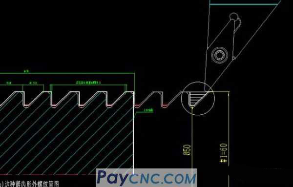 Give an example of a serrated thread, the diagram is as follows: (0-45° serrated thread)