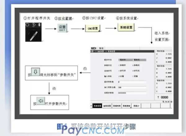 The following introduces the switching method of the working mode of the internal and external chuck of the hydraulic chuck of the GSK988T series CNC machine tool.01 Press the system [Set] to enter the parameter switch interface and turn on the parameter switch, as shown in Figure 1.