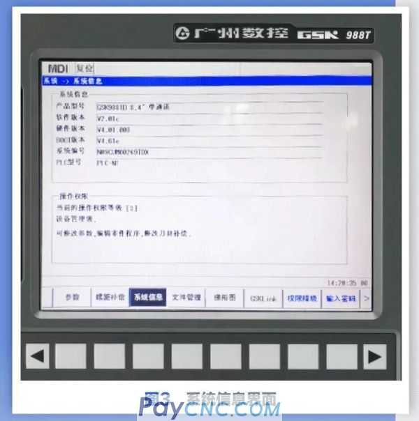 Press the system [System] key, press the "ladder" softkey below the system screen, and then press the "arrow" softkey at the bottom right of the system screen (see Figure 5).