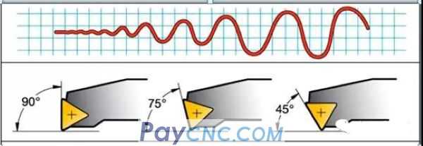 The above three common tool main angles are: 90°, 75°, 45°. The smaller the main declination angle, the greater the radial force, and the greater the tool vibration tendency.
