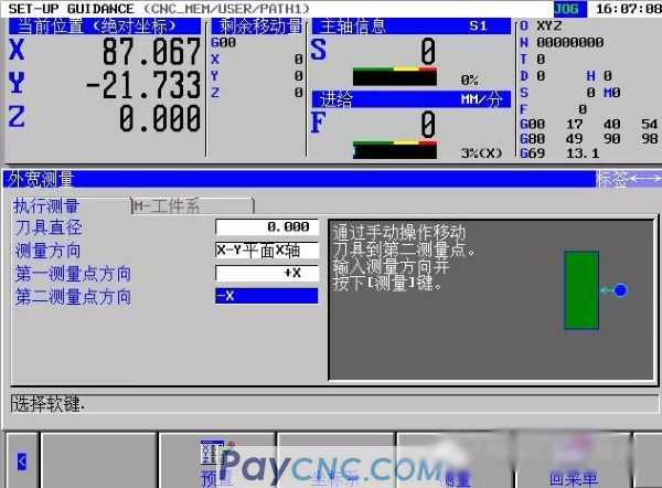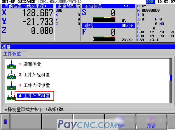 3. Take the centering function as an example, move the cursor, select "4. Workpiece outer width measurement", and press the soft key "Select" button;