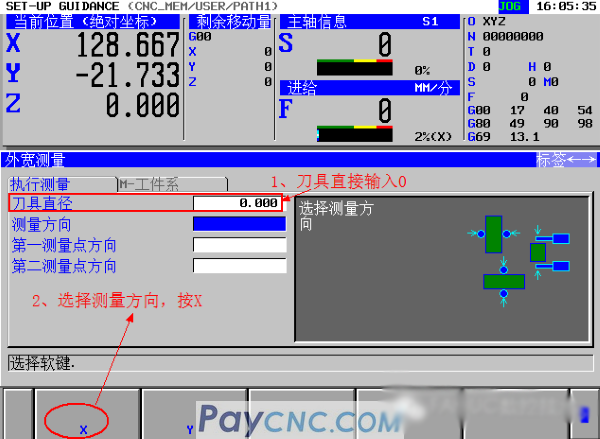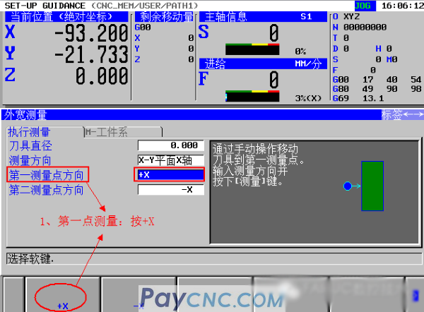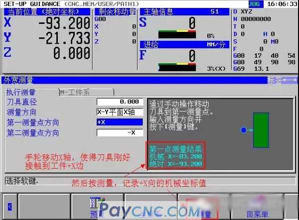7. Perform measurement (Y direction): consistent with the above steps 5 and 6, and write the Y direction measurement result into the workpiece coordinate system