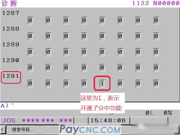 Then enter 1291, press the search number, the screen shown below appears, 1291#3 is 1, which means that the centering function can be used, and 0 means that it cannot be used