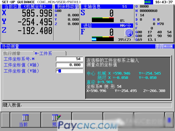 ② Workpiece coordinate system number: input the workpiece coordinate system to be set, such as G54, input 54 and press INPUT