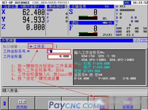6. Write the measured machine coordinate value into the workpiece coordinate system