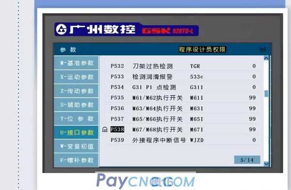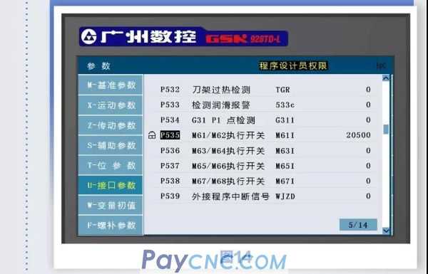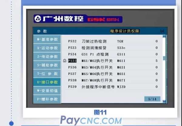 For example, Figure 14: When P535=20500, it means that the UI05 button executes M61;
