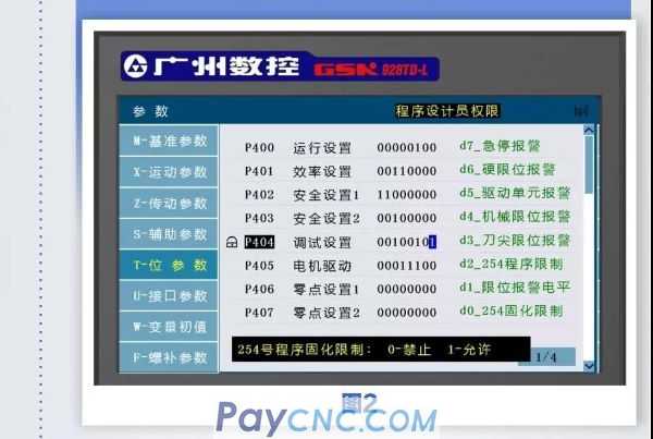 No. 254 program solidification restriction, parameter P404_d0:0-prohibited, 1-allowed, as shown in Figure 2;