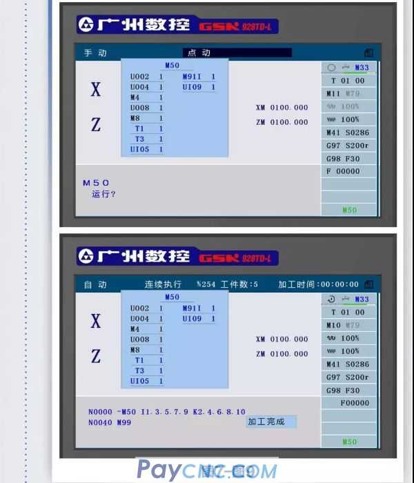 The machine tool manufacturer can set some custom instructions to control the additional devices, and the operator only needs to input the instructions to conveniently operate the additional devices. In response to this situation, the GSK928TD-L/928Ti system has specially developed a custom command function to solve this problem. The system provides 25 custom commands from M50 to M74, and the specific number is edited by the machine tool manufacturer. The custom instruction must be edited in the %254 program. First, the single-segment debugging of the %254 program is successful in the automatic working mode, and then the program is solidified in the editing working mode; after the program is solidified successfully, in the manual mode and other programs (%000~ %253) can use the solidified custom command, otherwise the system alarm prompts that there is no custom command, otherwise the system alarm prompts that there is no custom command. The following is a detailed introduction to the use of this function.