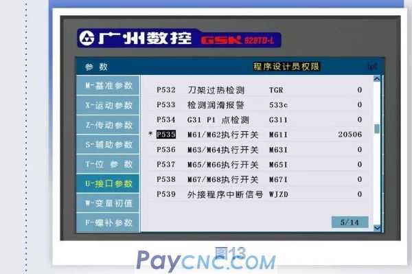 For example, Figure 13: When P535=20506, it means that the UI05 button executes M61 and the UI06 button executes M62;