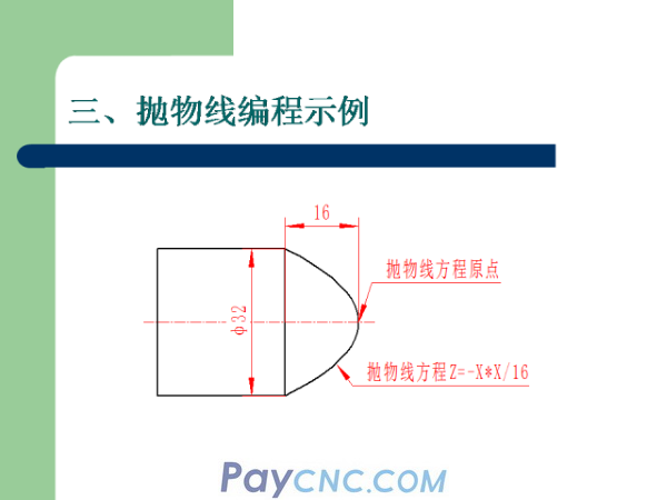 This method is the layer cutting method, that is, the Z coordinate is obtained by the change of the X coordinate, so as to cut the approximate parabola step, and finally the parabola is finished